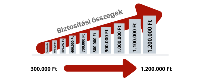 ✅ Rugalmas biztosítási összeg – 300.000 és 1.200.000 Ft között választhatja ki az Önnek megfelelő összeget.